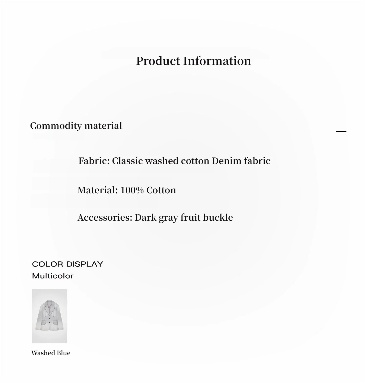 The denim theme interprets the suit jacket from a unique perspective, with heavy retro washing, breaking through the old shackles, bringing a wonderful new fashion experience, and conveying a casual and chic attitude towards life.
