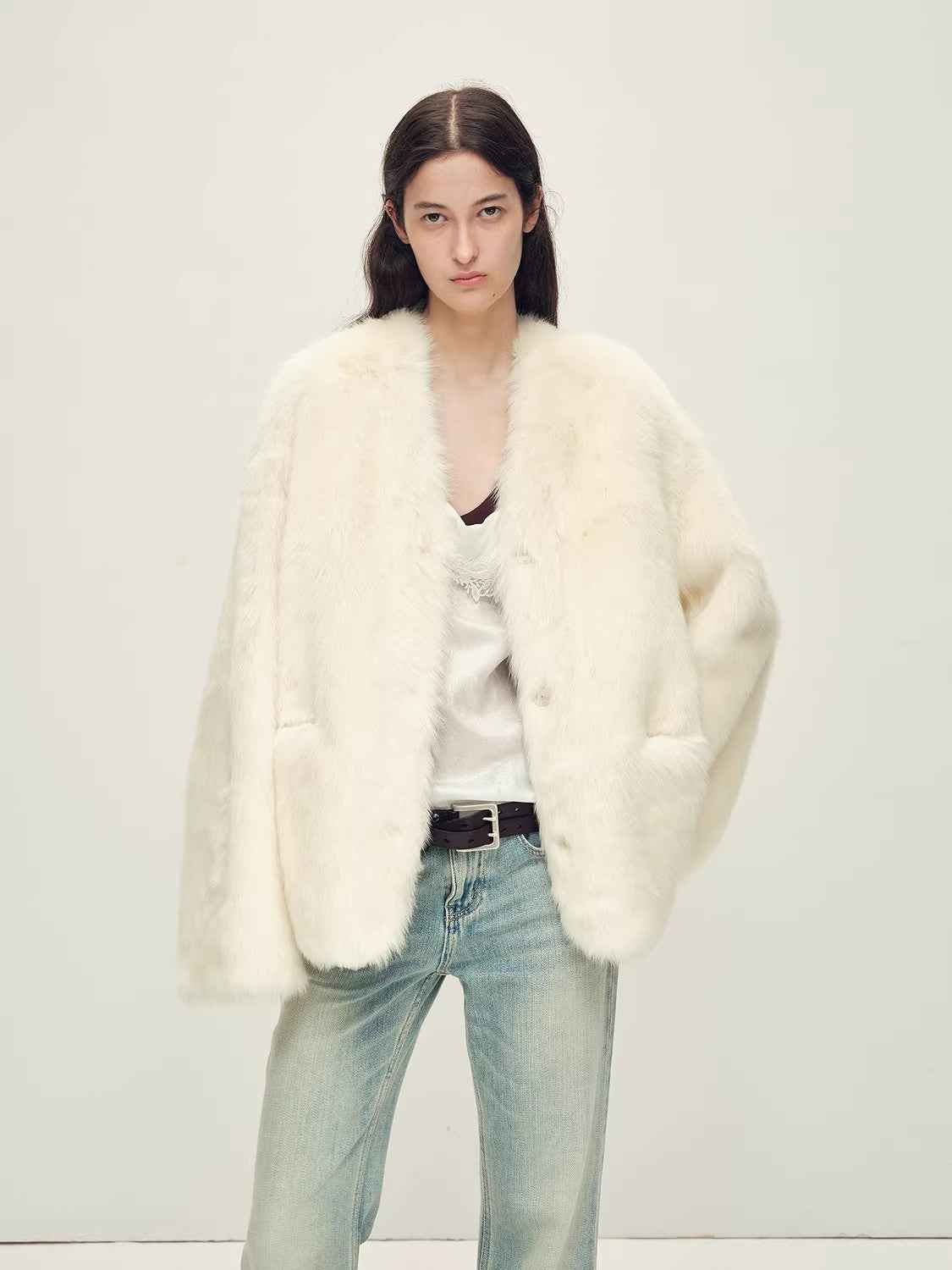 Firelady Fur Italian Tuscan Shearling V-Neck Coat "Freezing Point Rum"