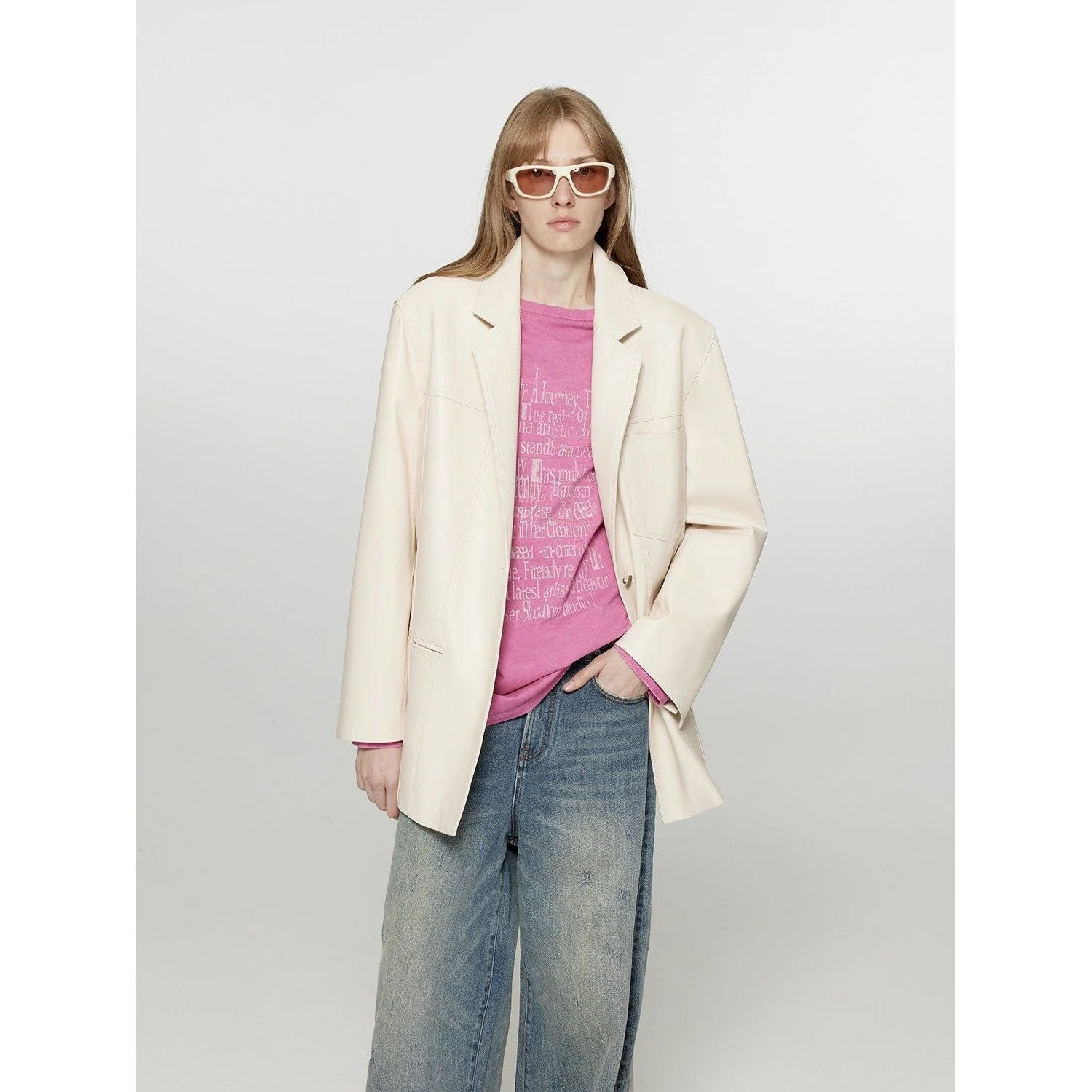 This oversized lambskin blazer redefines modern tailoring. Crafted from washed, vegetable-tanned leather, it blends a vintage touch with a contemporary silhouette for a look that's both edgy and effortless. Available in a curated palette: Deep Brown, Classic Black, Classic White, Tea Break, and our textured New Black with a bubble-grain finish.