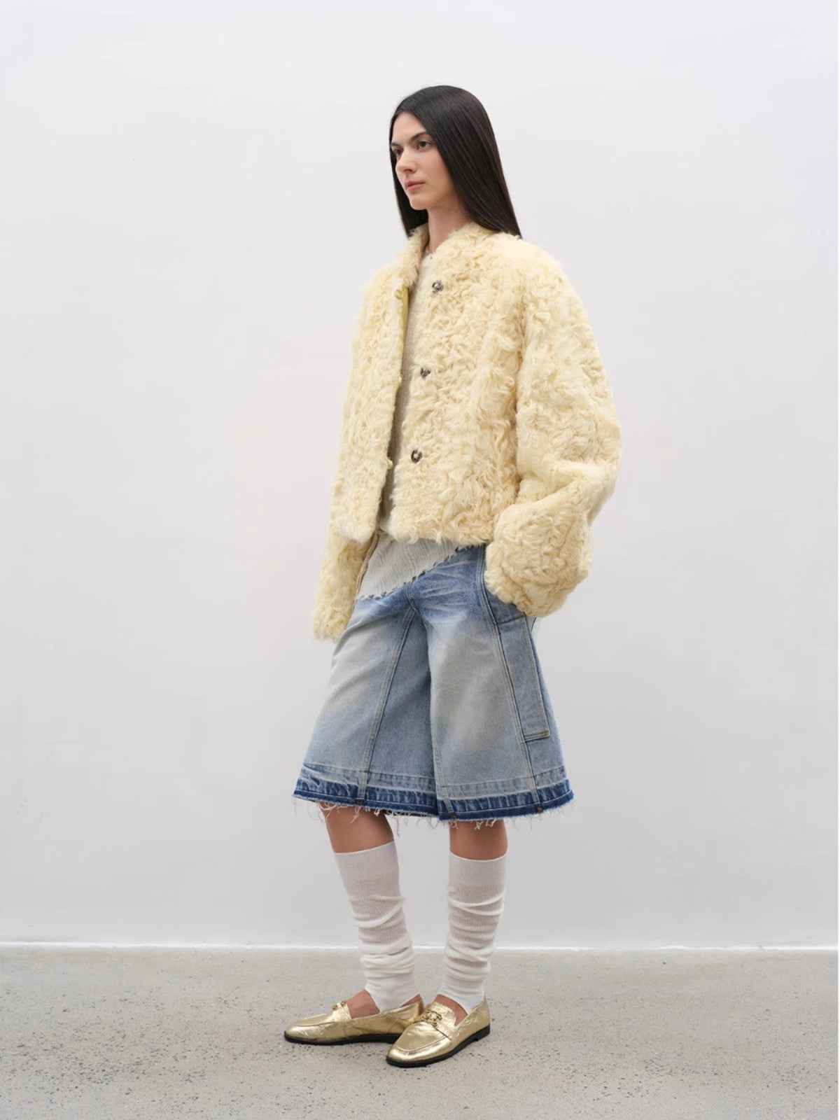 The newly selected and upgraded fluffy and lightweight sheep's curly wool has a strong texture and a sense of agility. The upper body is light and cold-resistant, keeping warm without weighing down the body. The straight shoulder, short version, stand-up collar box shape modifies the body shape and proportions from the lines, and the body is made of enough material to release space, making it easy, comfortable and fashionable to wear.