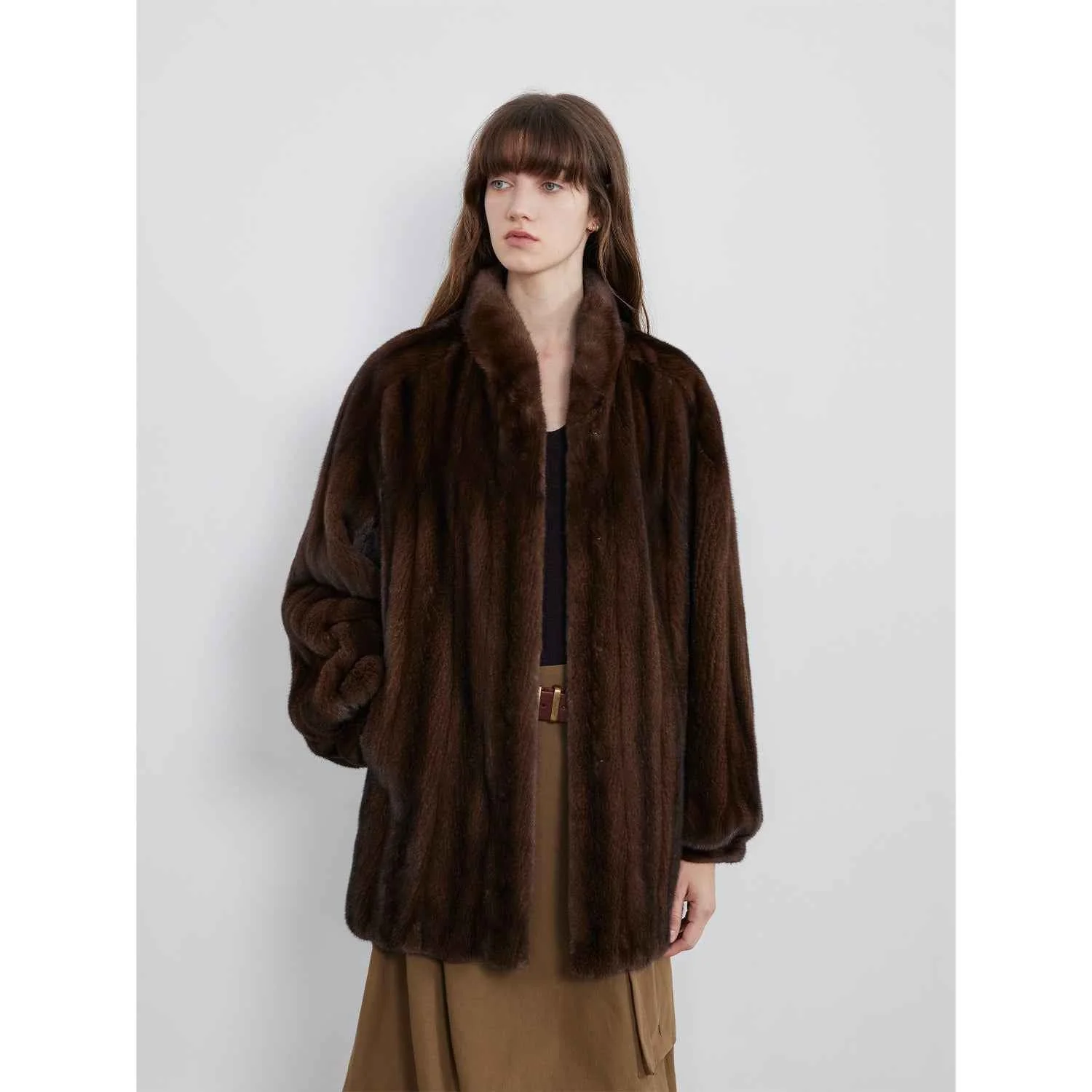 Craftsmanship “Purple standard grade velvet whole mink color series” small collar stand-up collar medium-length silhouette jacket