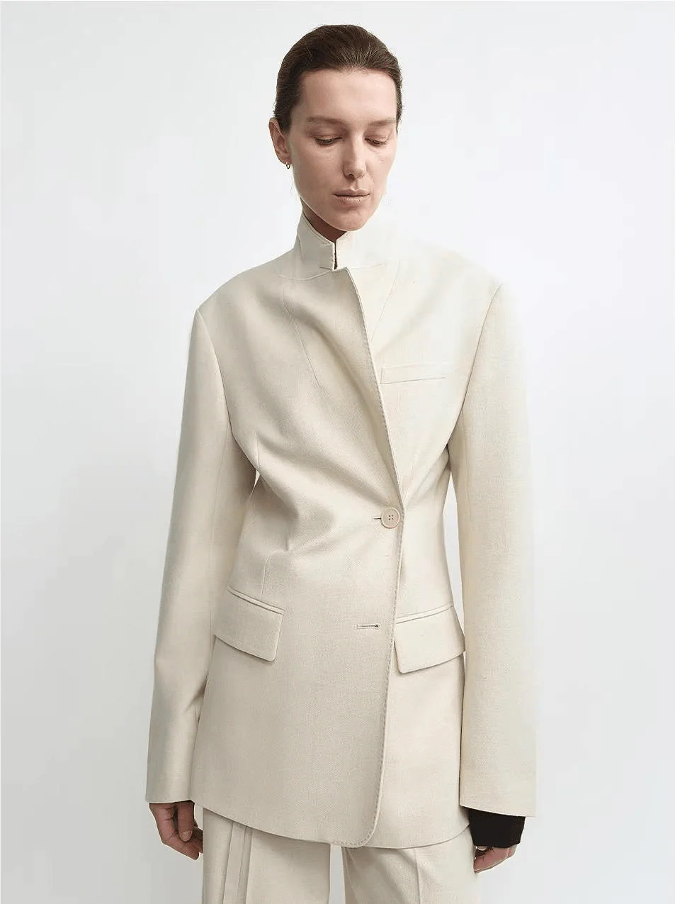 - Modern Relaxed Fit - Slightly dropped shoulders and curved sleeves create a contemporary silhouette that's both powerful and feminine
